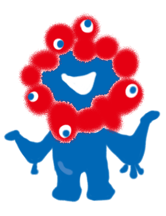 大阪万博の 公式キャラクターは 「ミャクミャク」と いいます。 「ミャクミャク」という 名前に なった 理由は 人・知恵・技術・歴史・文化が 昔から 今まで 「脈々」と つながっていて、 これからも 「脈々」と つながるように 願うためです。