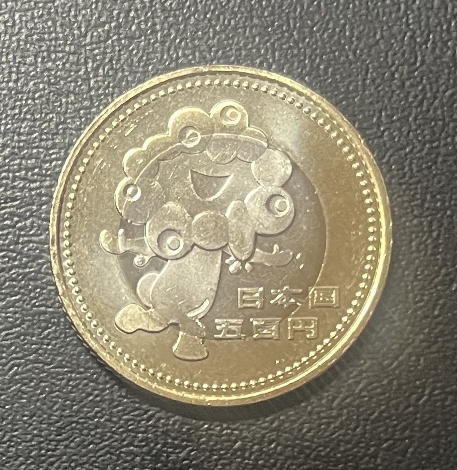 大阪万博を 記念して 500円の 記念硬貨が 出ています。この 記念硬貨には ミャクミャクが かいてあります。